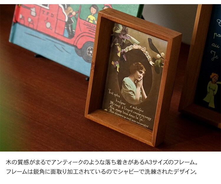 木の質感がまるでアンティークのような落ち着きがある、A3サイズのフレーム。