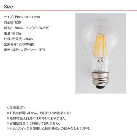 一般電球型LED電球 口金径E26 LED 電球 エジソンランプ ペンダントライト 天井照明 北欧 スタンドライト 韓国 インテリア おしゃれ ナチュラル インダストリアル レトロ ダイニング リビング 寝室 玄関