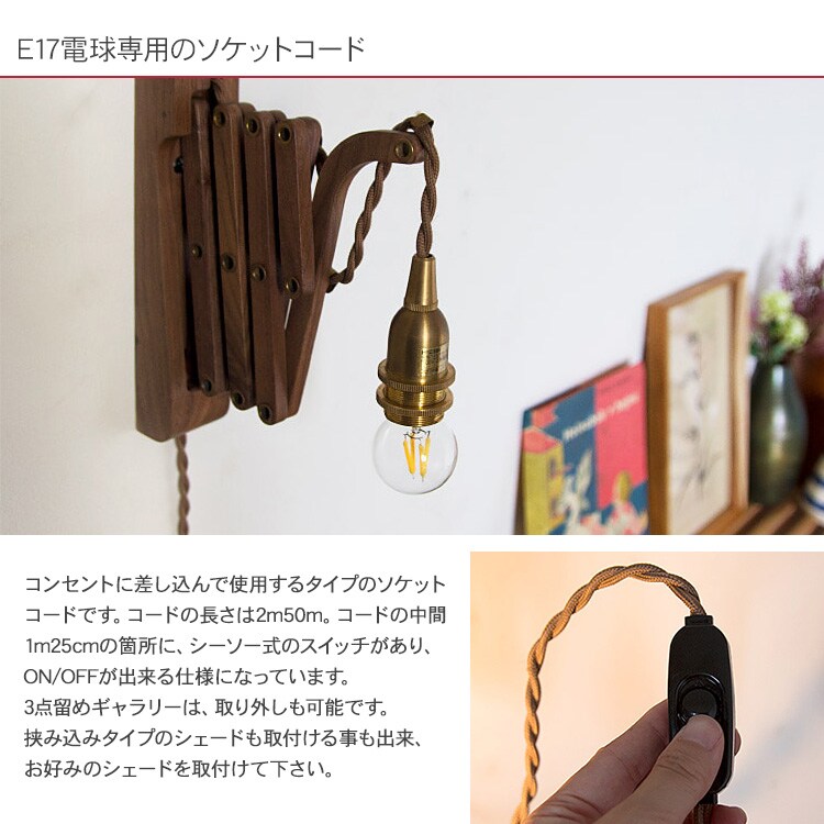 中間スイッチ付ソケットコードE17プラグタイプ 灯具 照明 おしゃれ ペンダントライト 照明器具 照明コンセント 北欧 リビング 寝室 玄関 韓国 インテリア ライト ナチュラル シンプル
