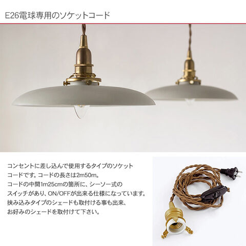 中間スイッチ付ソケットコードE26プラグタイプ 灯具 照明 おしゃれ ペンダントライト 照明器具 照明コンセント 北欧 リビング 寝室 玄関 韓国 インテリア ライト ナチュラル シンプル