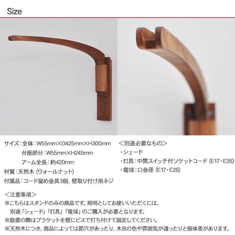商品説明:ウォールナットの木目が美しい壁付けブラケット。(ブラケット部分単品パーツ)