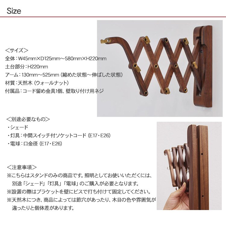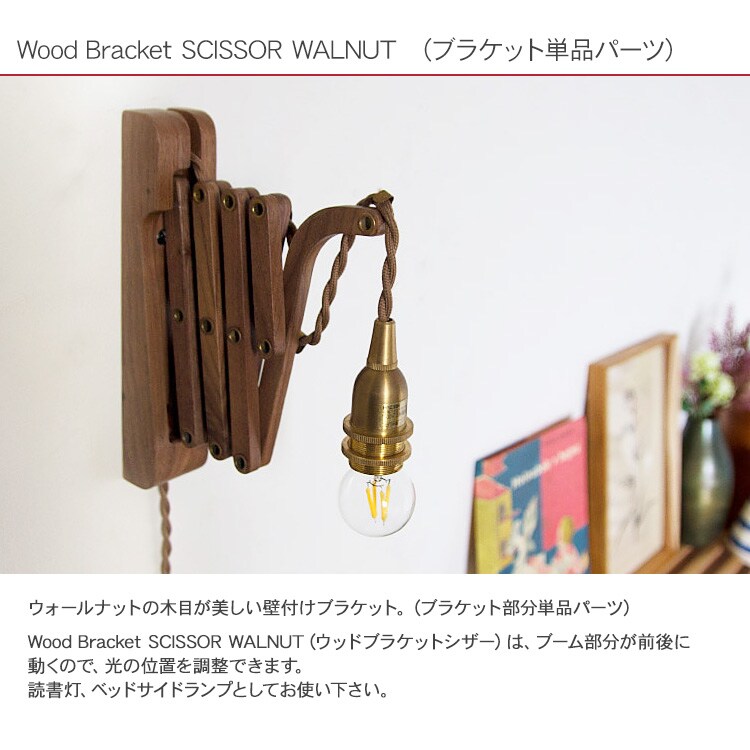 Wood Bracket SCISSOR WALNUT(ウッドブラケットシザー)は、ブーム部分が前後に動くので、光の位置を調整できます。