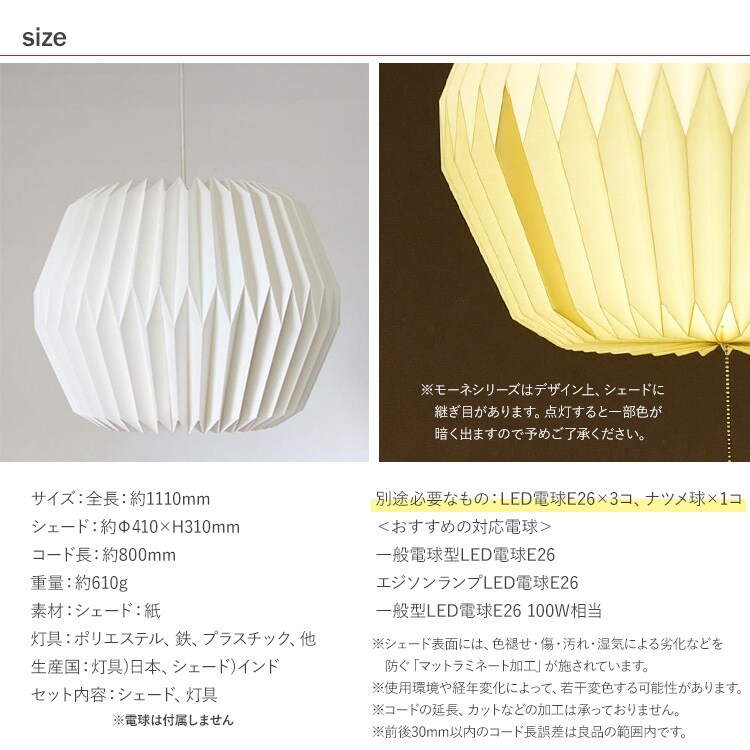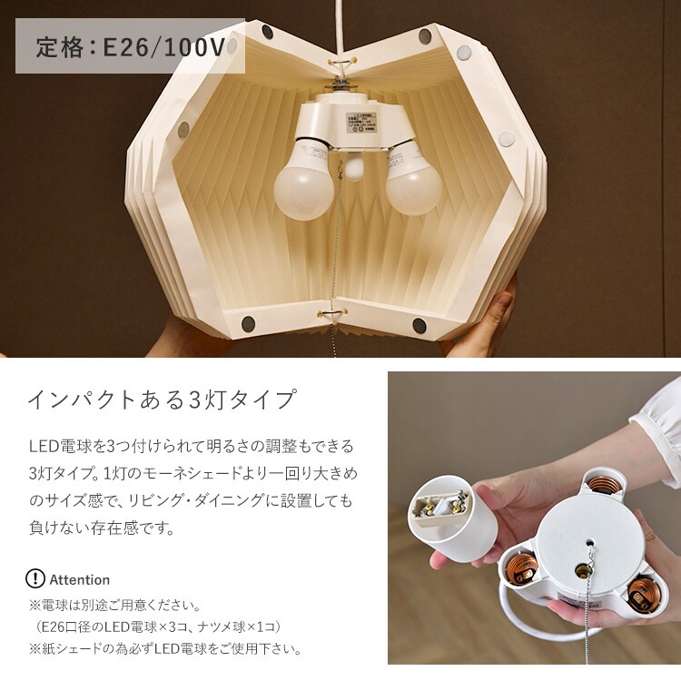 セット内容:シェード、灯具※電球は付属しません。別途ご用意ください。(LED電球E26×3コ、ナツメ球×1コ)