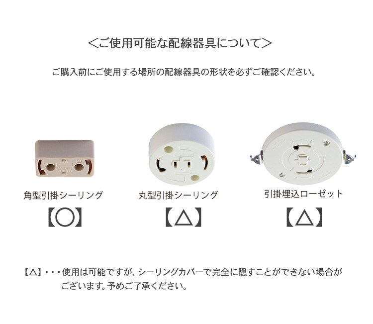 ※△の配線器具は使用可能ですが、シーリングカバーで完全に隠す事ができない場合がございます。