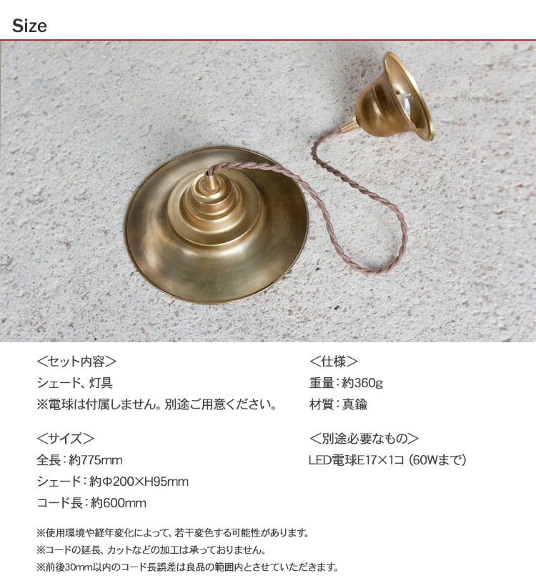 時間の経過と共に徐々に変化する真鍮の風合いをお楽しみください。