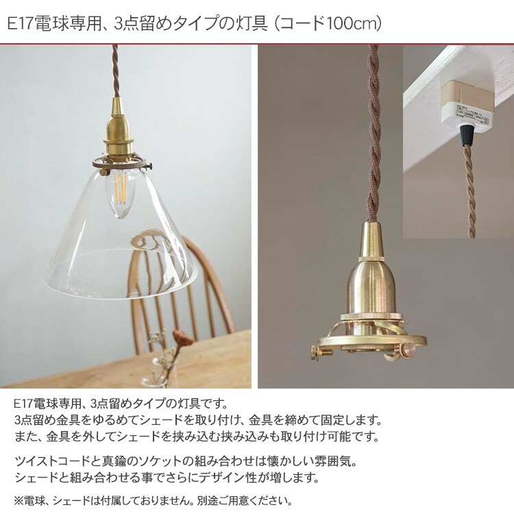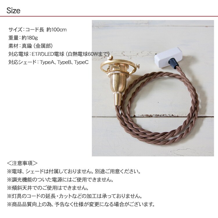 ペンダントライト E17用 BR 100cm 灯具 照明 おしゃれ 照明器具 ソケットコード 北欧 ライト リビング 寝室 玄関 韓国 インテリア ライト ナチュラル シンプル レトロ インダストリアル