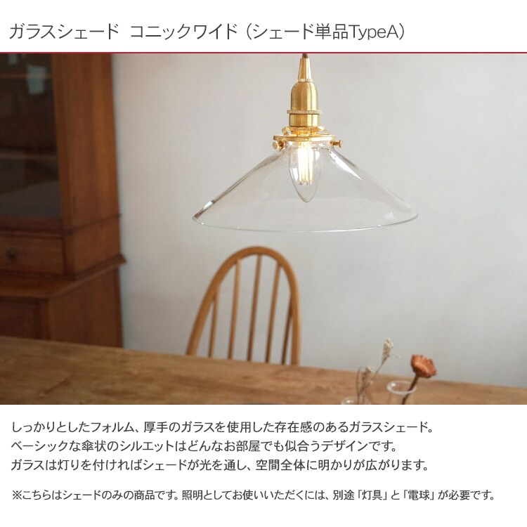 ガラスシェード コニックワイド _PP02 ランプシェード 照明 照明器具 おしゃれ 北欧 インテリア ガラス ダイニング リビング 寝室 トイレ 玄関 韓国 インテリア シンプル ナチュラル レトロ