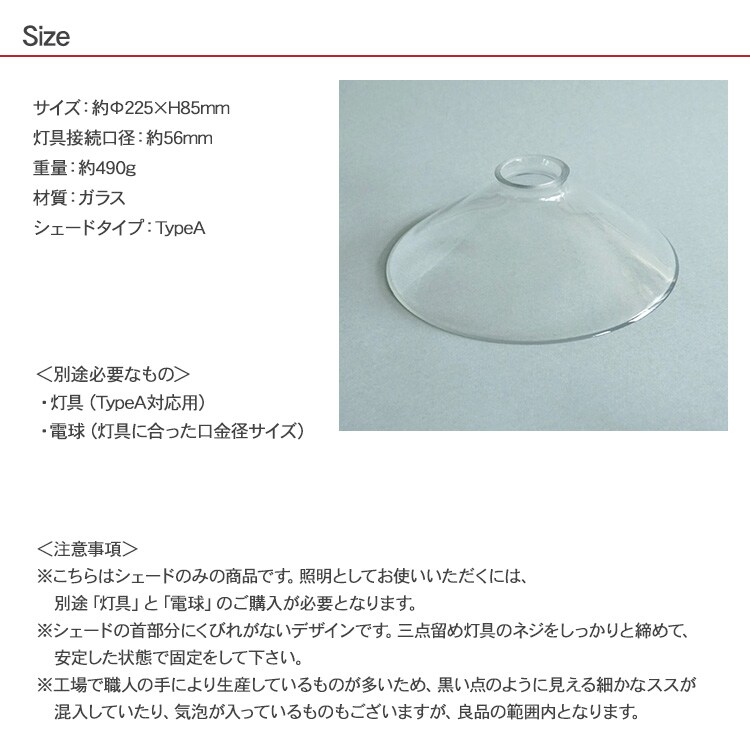 注意事項:※こちらはシェードのみの商品です。照明としてお使いいただくには、別途「灯具」と「電球」のご購入が必要となります。