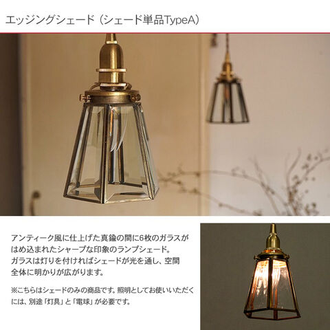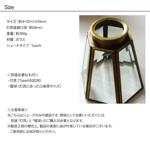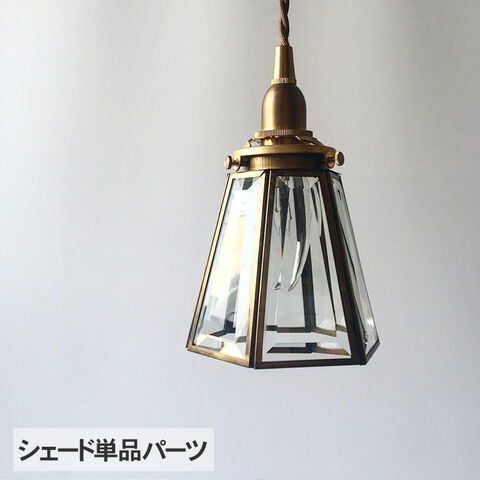 商品説明:アンティーク風に仕上げた真鍮の間に6枚のガラスがはめ込まれたシャープな印象のランプシェード。
