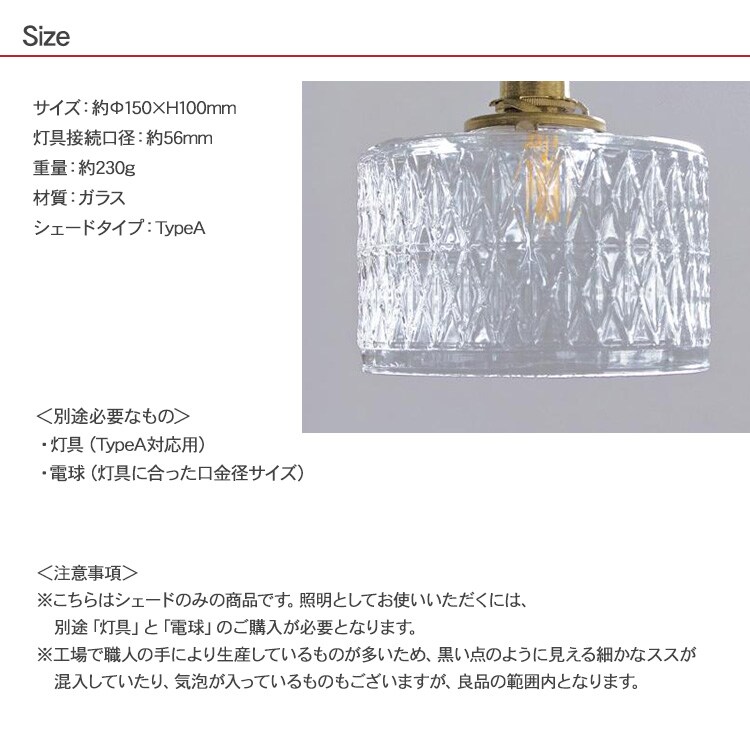 注意事項:※こちらはシェードのみの商品です。照明としてお使いいただくには、別途「灯具」と「電球」のご購入が必要となります。