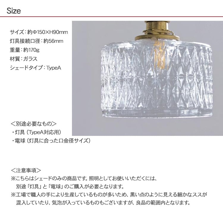 注意事項:※こちらはシェードのみの商品です。照明としてお使いいただくには、別途「灯具」と「電球」のご購入が必要となります。