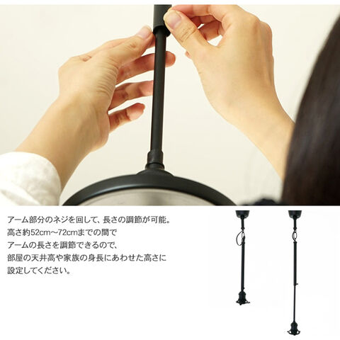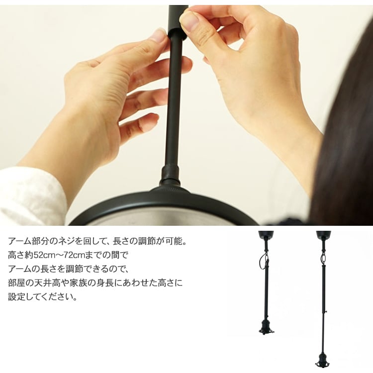 高さ約52cm~72cmまでの間でアームの長さを調節できるので、ダイニングからリビングまで様々な部屋におすすめです。