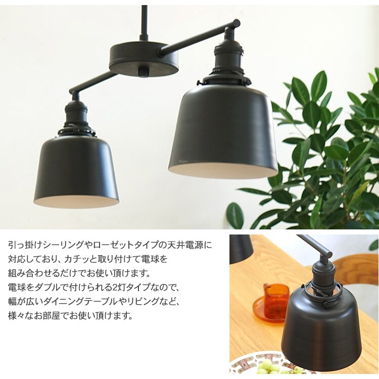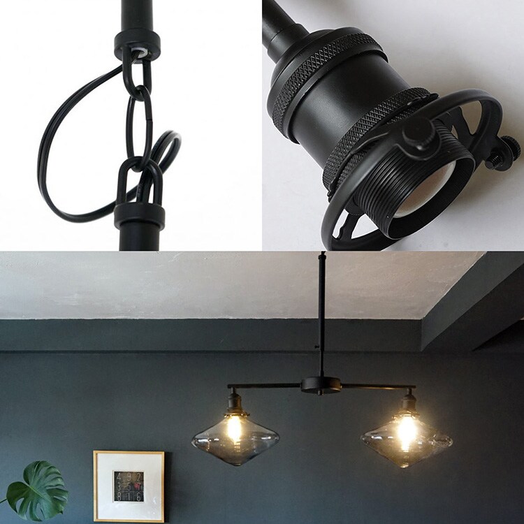 マットなブラックアイアンが格好良い2灯タイプのペンダントライト用灯具。