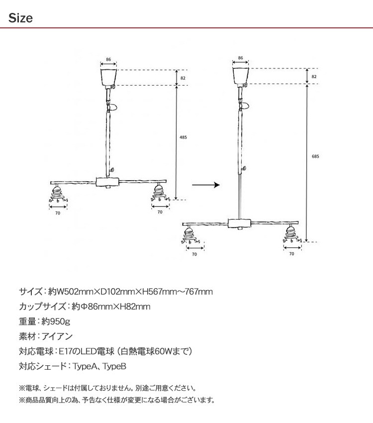 注意事項:※電球、シェードは付属しておりません。