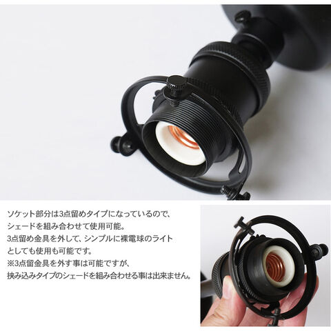 ソケット部分は3点留めタイプになっているので、シェードを組み合わせて使用可能。