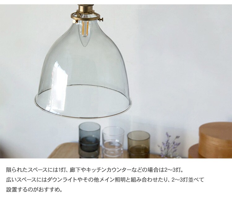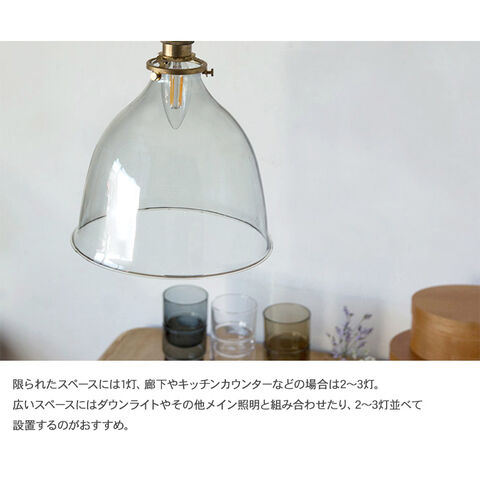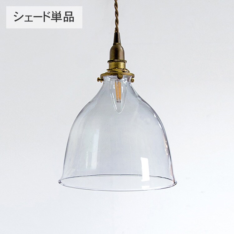 鐘のように裾広がりの柔らかいシルエットが特徴のクリアガラスシェード。