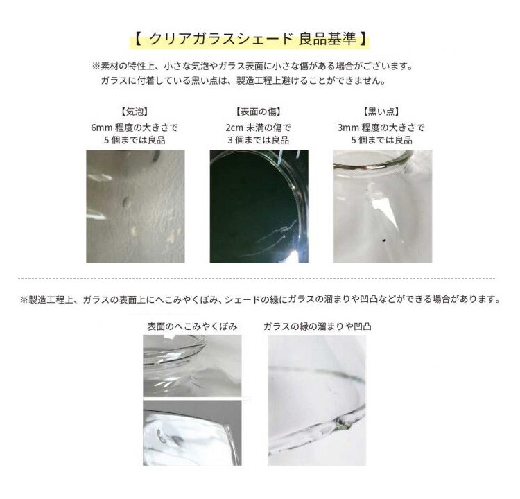 ※工場で職人の手により生産しているものが多いため、黒点や気泡が入っているものもございますが、良品の範囲内とさせていただいております。