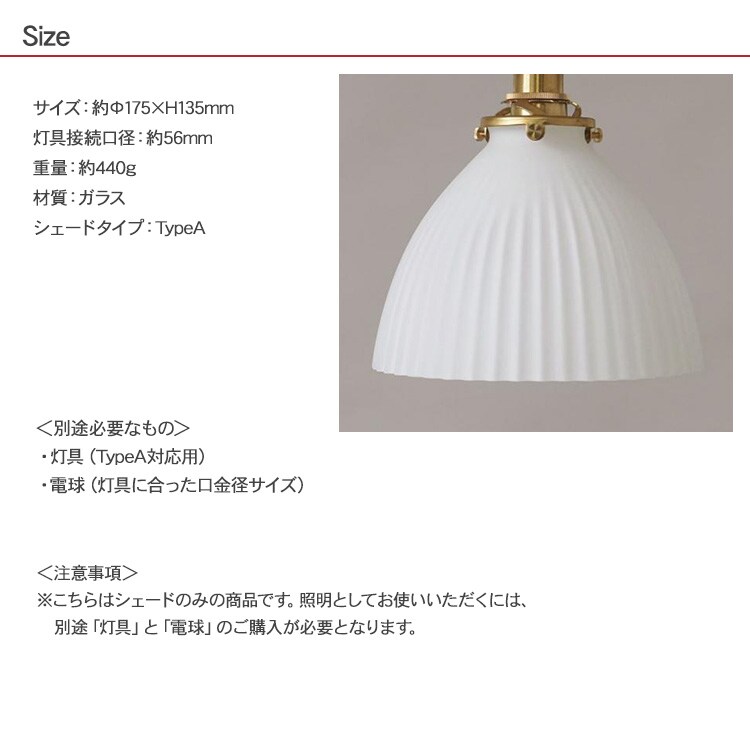 ※こちらはシェードのみの商品です。照明としてお使いいただくには、別途「灯具」と「電球」のご購入が必要となります。