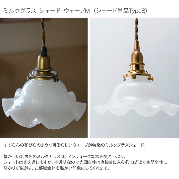 すずらんの花びらのような可愛らしいウエーブが特徴のミルクグラスシェード。