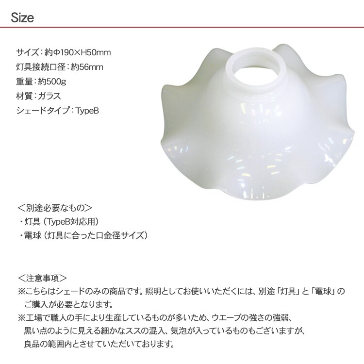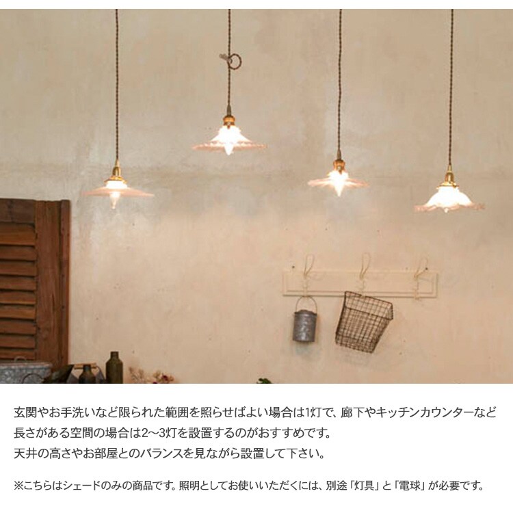 注意事項:※こちらはシェードのみの商品です。照明としてお使いいただくには、別途「灯具」と「電球」のご購入が必要となります。