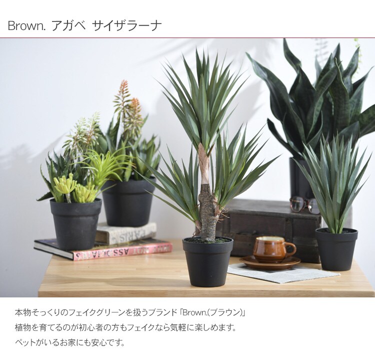 Brown. ブラウン アガベ サイザラーナ ポット 58 観葉植物 フェイクグリーン インテリアグリーン 卓上 ミニ 鉢 おしゃれ ボタニカル グリーンディスプレイ リビング 玄関 カフェ 店舗