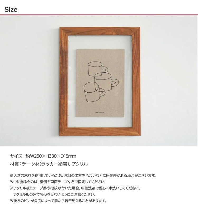 チークフレーム クリア A4 フレーム ディスプレイ 写真 ポスター フォトフレーム 壁掛け ドライフラワー おしゃれ 飾り ギフト プレゼント