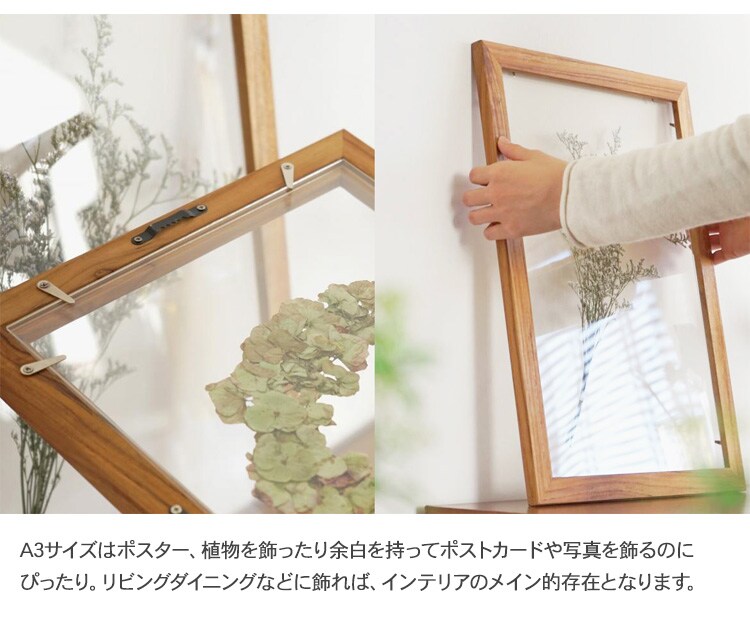 チークフレーム クリア A3 フレーム ディスプレイ 写真 ポスター フォトフレーム 壁掛け ドライフラワー おしゃれ 飾り ギフト プレゼント