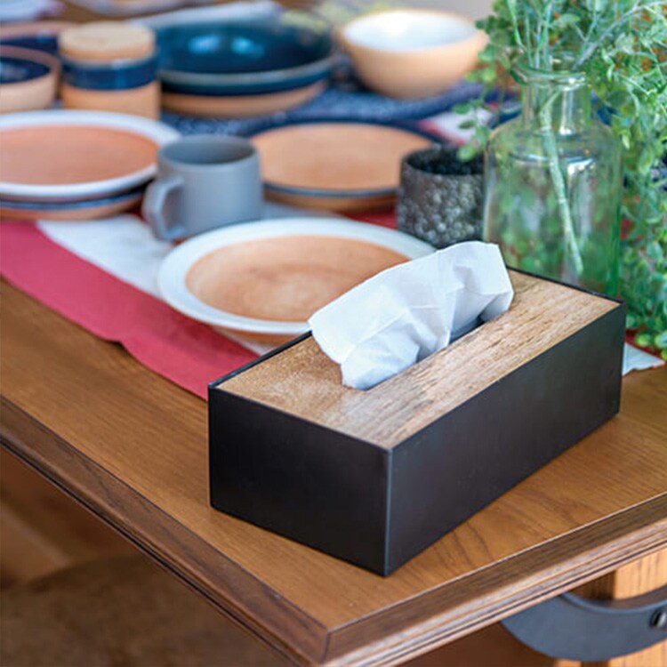 「ウッドボックス×ブラックアイアン蓋」はナチュラルテイストな雰囲気に。