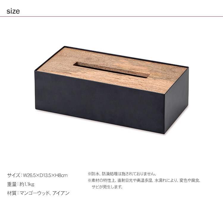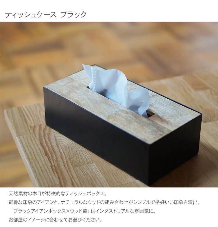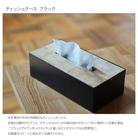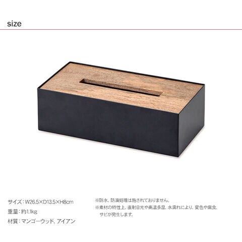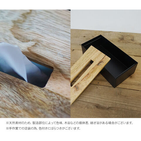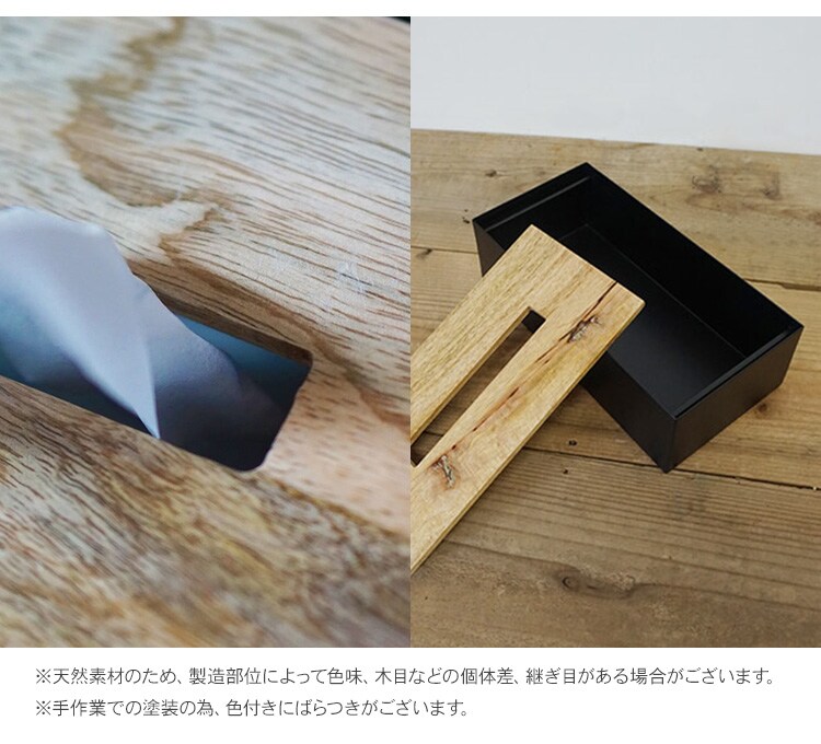 商品説明:天然素材の木目が特徴的なティッシュボックス。