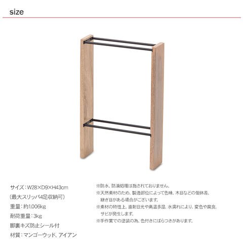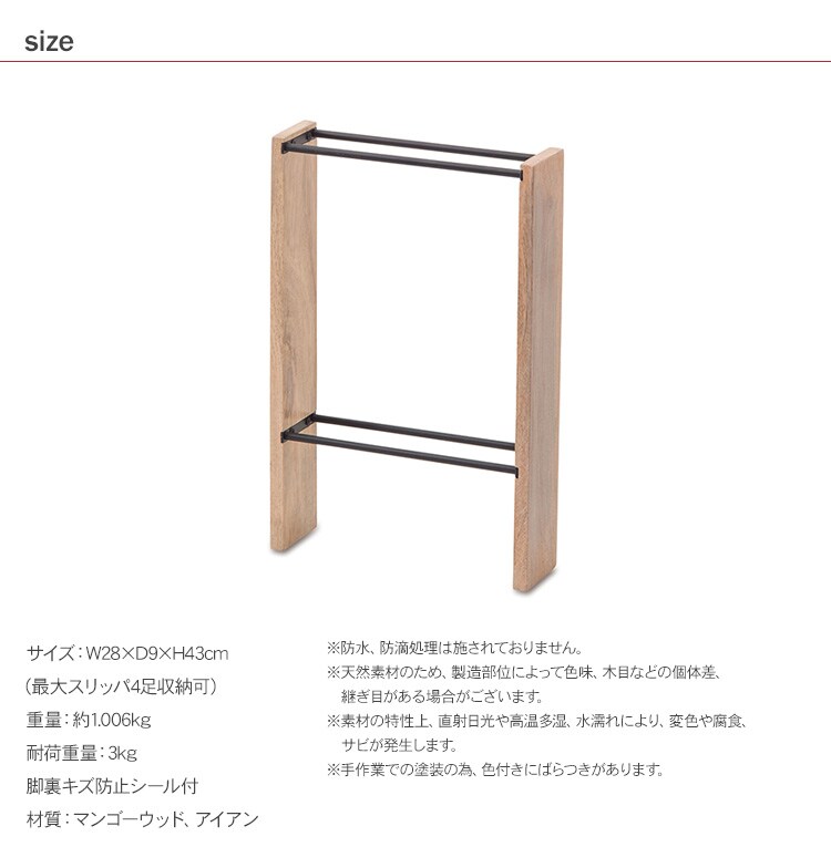 サイズ:W28×D9×H43cm(最大スリッパ4足収納可)