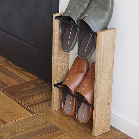 商品説明:天然素材の木目が特徴的なスリッパラック。