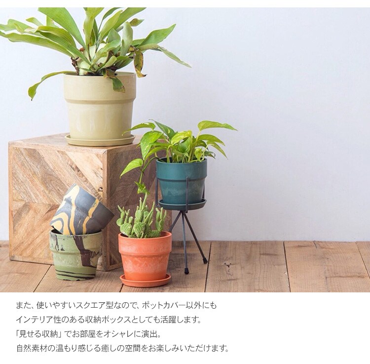 また、使いやすいスクエア型なので、ポットカバー以外にもインテリア性のある収納ボックスとしても活躍します。
