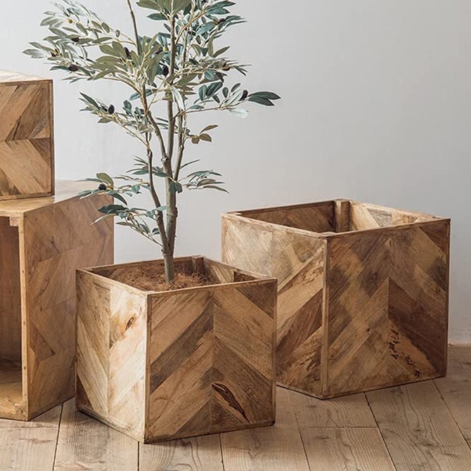 商品説明:美しい木目が魅力的なマンゴーウッドで作られたポットカバー。