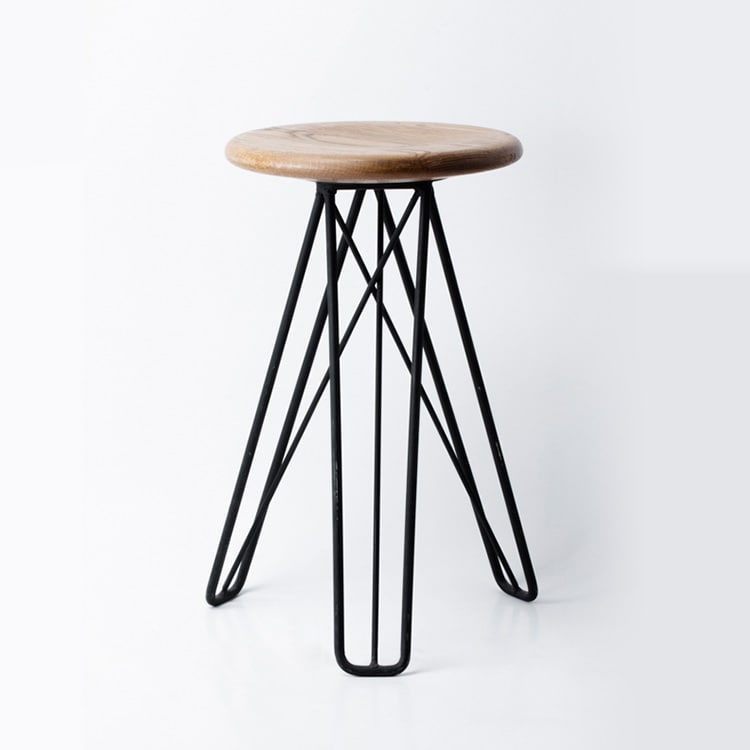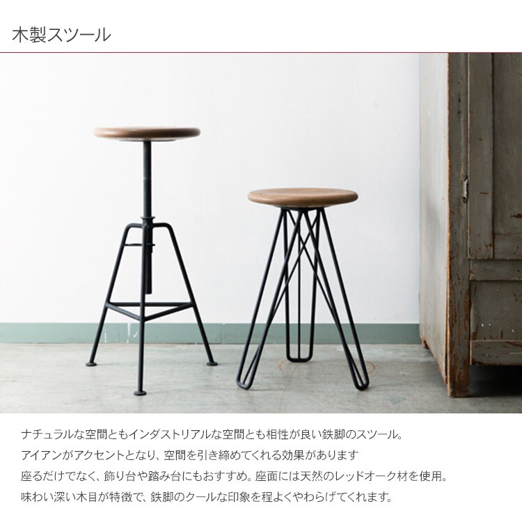 商品説明:ナチュラルな空間ともインダストリアルな空間とも相性が良い鉄脚のスツール。