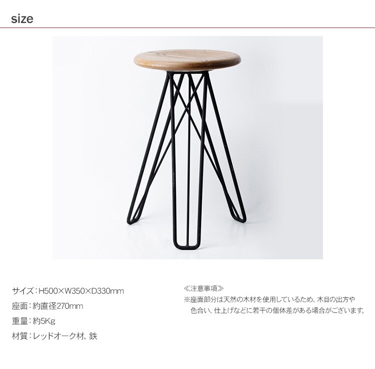 注意事項:※座面部分は天然の木材を使用しているため、木目の出方や色合い、仕上げなどに若干の個体差がある場合がございます。