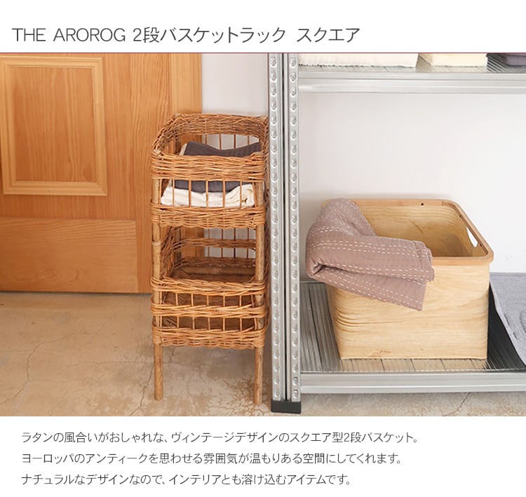 THE AROROG アラログ スクエア2段バスケット 収納ラック 収納ボックス 収納ケース 籠 カゴ バスケット シンプル ランドリー キッチン 北欧 インテリア おしゃれ