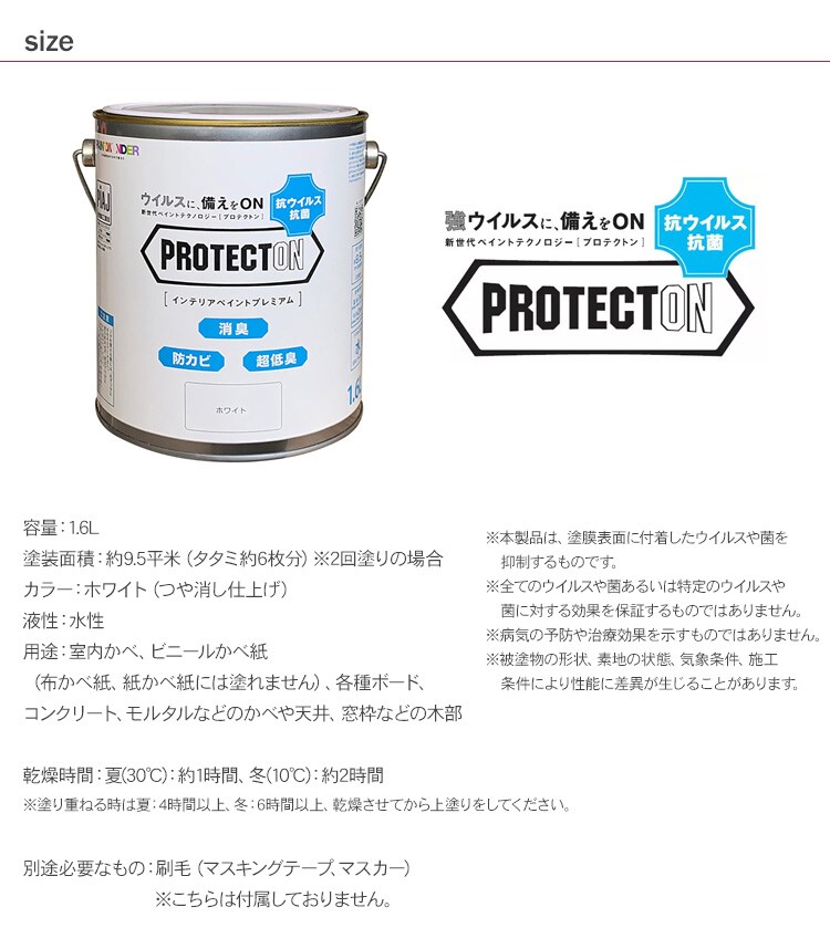 室内用 水性塗料 PROTECTON インテリアペイントプレミアム 1.6L
