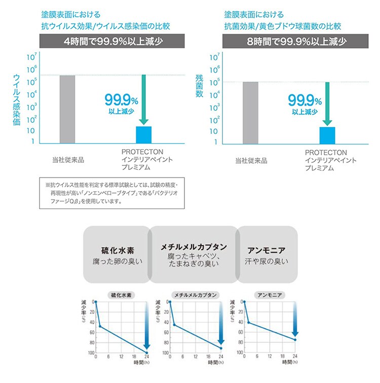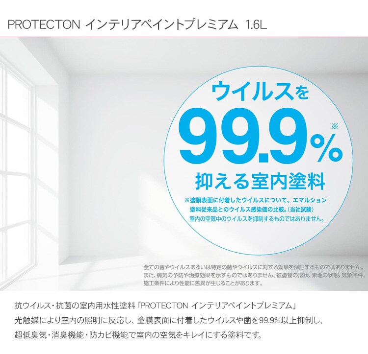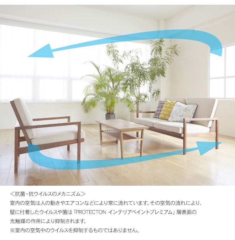 ※本製品は、塗膜表面に付着したウイルスや菌を抑制するものです。室内の空気中のウイルスや菌を抑制するものではありません。