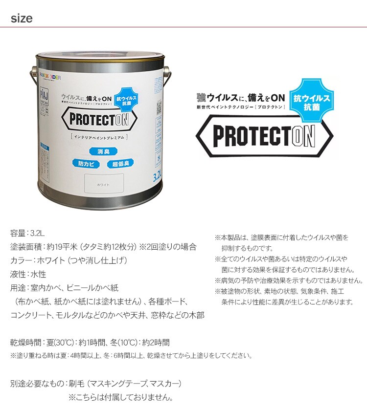 室内用 水性塗料 PROTECTON インテリアペイントプレミアム 3.2L