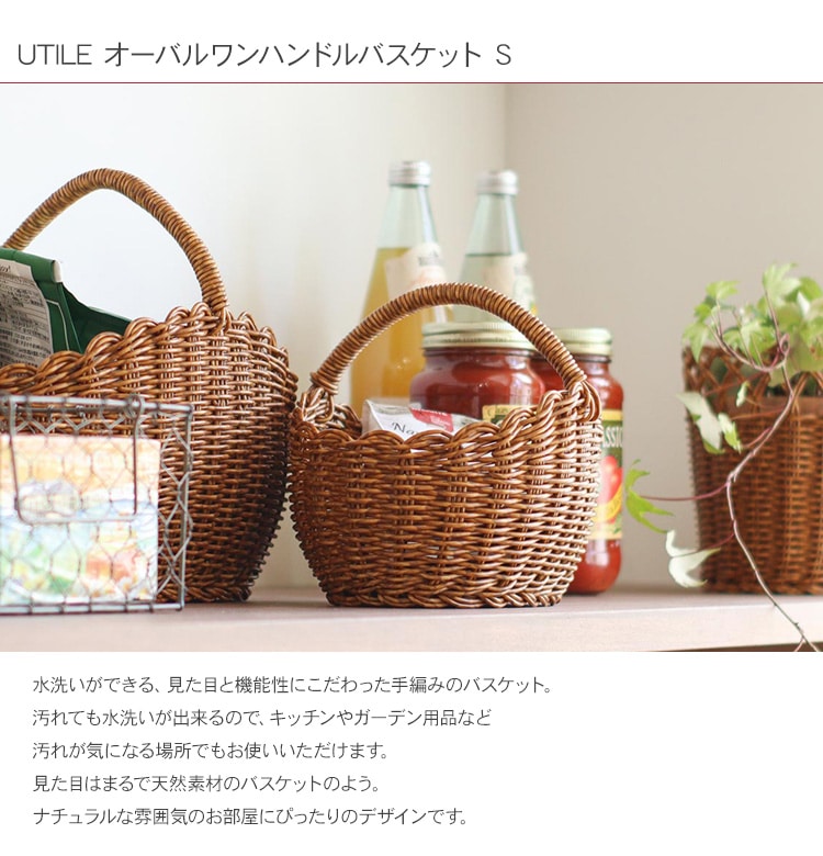 UTILE ユティル オーバルワンハンドルバスケット S 収納バスケット 収納カゴ 水拭き ランドリー収納 キッチン収納 北欧 おしゃれ