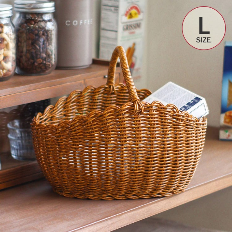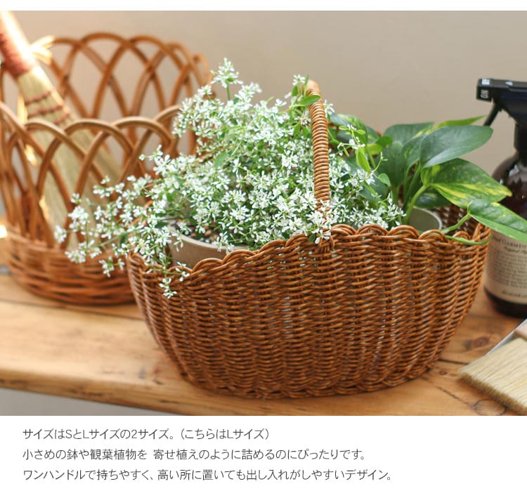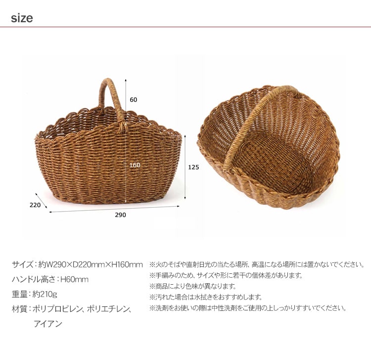 商品説明:水洗いができる、見た目と機能性にこだわった手編みのバスケット。
