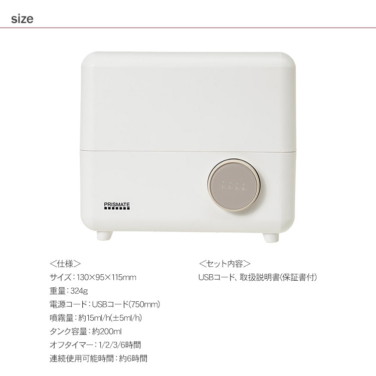 PRISMATE プリズメイト ミストディフューザー アロマ&LEDライト 加湿器 コンパクト 乾燥対策 アロマオイル 抗菌仕様 花粉 清潔 予防 焚火 炎 リラックス 北欧 おしゃれ ギフト プレゼント