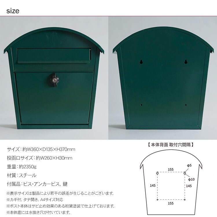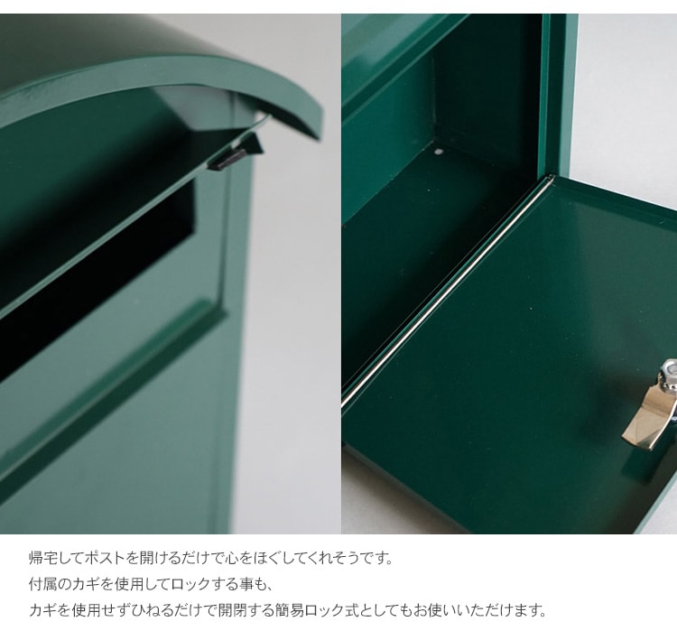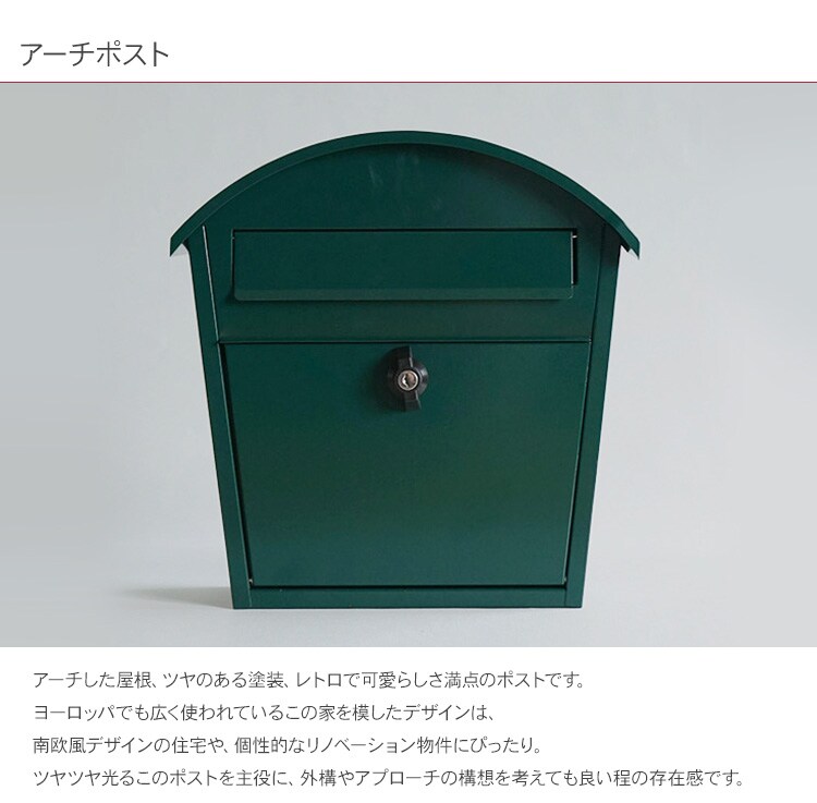 アーチポスト グリーン ポスト 壁掛け 壁掛け 郵便ボックス 郵便受け メールボックス A4サイズ対応 簡易ロック カギ付