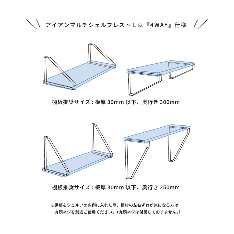 注意事項:※棚板が付属しません。別途棚板用の木材をご用意ください。