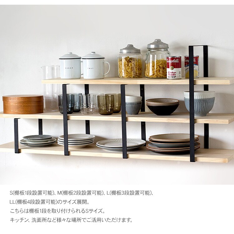 こちらは棚板1段を取り付けられるSサイズ。キッチン、洗面所など様々な場所でご活用いただけます。