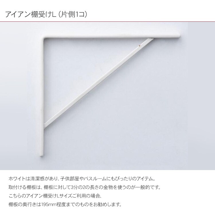 商品説明:12mm幅のシンプルな棚受けLサイズ。