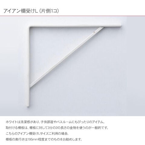 こちらのアイアン棚受けLサイズご利用の場合、棚板の奥行きは195mm程度までのものをお勧めします。