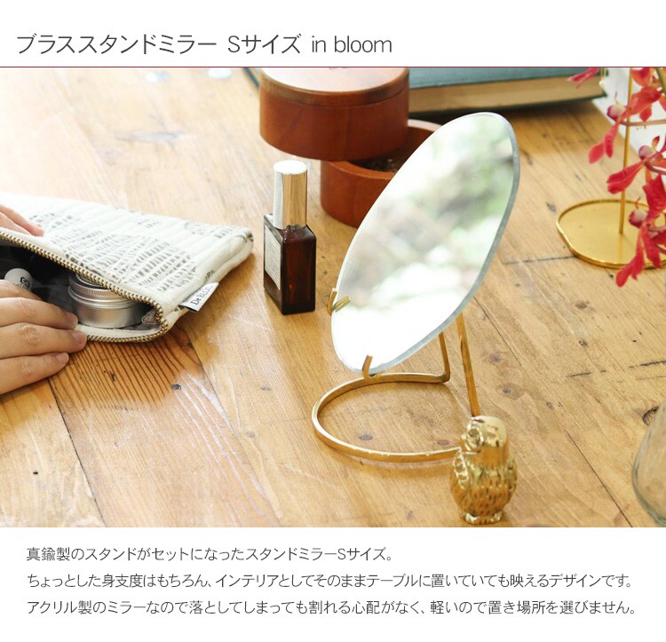 ブラススタンドミラー Sサイズ in bloom 鏡 卓上けミラー 真鍮 スタンド アクリルミラー おしゃれ アンティーク カフェ ショップ 北欧 インテリア リビング 玄関