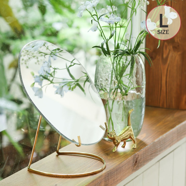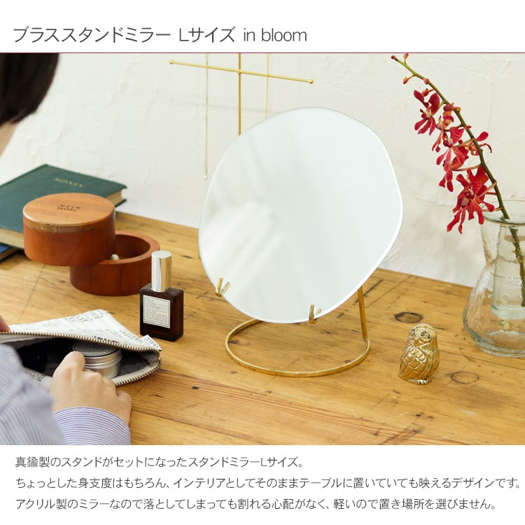 ブラススタンドミラー Lサイズ in bloom 鏡 卓上ミラー 真鍮 スタンド アクリルミラー おしゃれ アンティーク カフェ ショップ 北欧 インテリア リビング 玄関