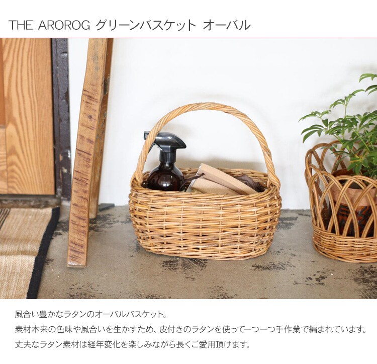 THE AROROG アラログ グリーンバスケット オーバル バスケット かご カゴ 籐 ラタン 収納 小物収納 北欧 インテリア 韓国 インテリア 雑貨